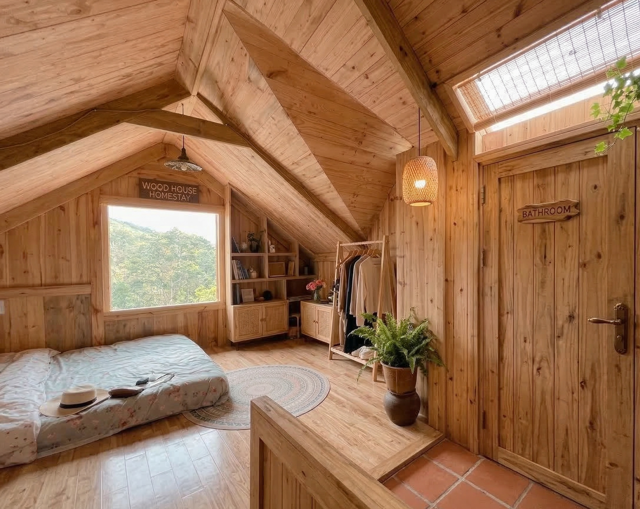 Tại WoodHouse Homestay, chúng tôi tin rằng hạnh phúc đôi khi chỉ là thức dậy trong một căn nhà gỗ thơm mùi nhựa thông...